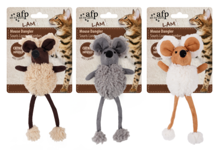 AFP Lambswool-Mouse Dangler Toy to stimulate the hunting instinct of your cat! With crackling material and catnip for extra fun. Has