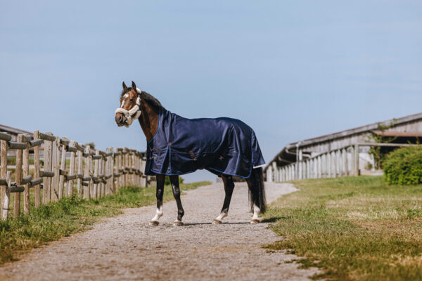 Stability and optimal comfort combined in one rug. – Stable: Elasticated cross surcingles, thigh straps, and crupper strap. – Comfortable: