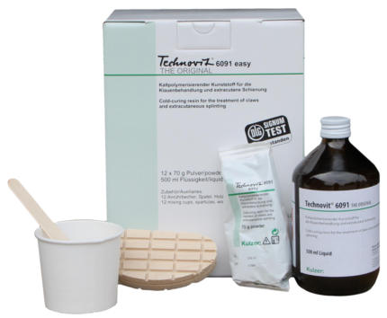 Claw treatment set for 12 treatments.Technovit is a quick-curing plastic material that is created after mixing the power and liquid
