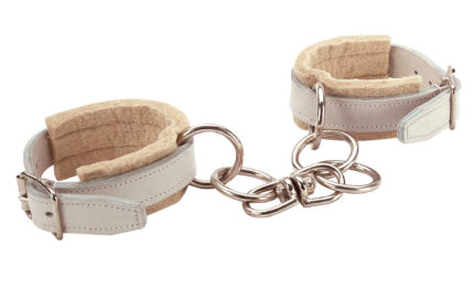 – Made of felt-lined buffalo leather. – Connected by a nickel-plated steel chain.
