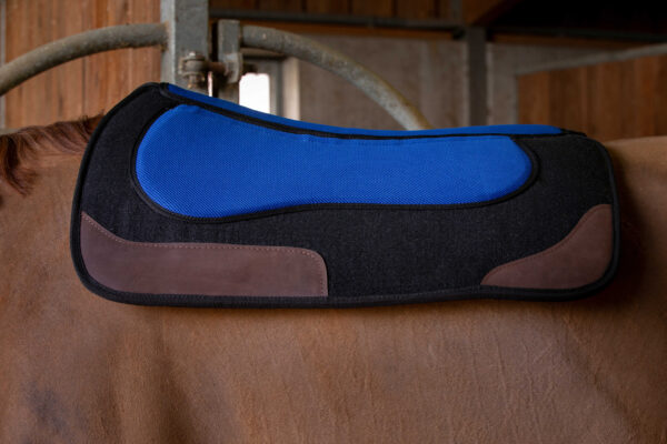 Western saddle pad made of acrylic and felt. – Exposed withers. – Breathable, durable, and shock-absorbing. – 20 mm thick