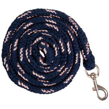 HKM Jalutusnöör –Rosegold– Stiilne ja vastupidav jalutusnöör igapäevaseks kasutamiseks tallis ja hobuse käsitlemisel. Nööri sisse põimitud roosakuldne niit ning metallist