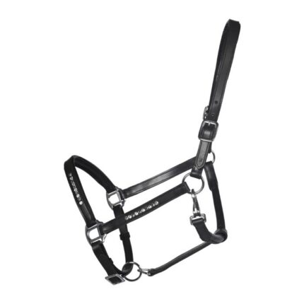 additional buckles facilitate the grooming of the head quality leather browband and noseband have soft padding|headpiece adjustable on both sides|golden