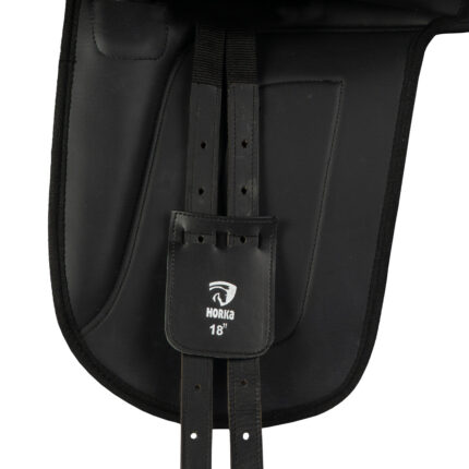 An elegant Clarino saddle designed for dressage riders. – Elegant: With a glossy black edging. Chrome-tanned leather girths.