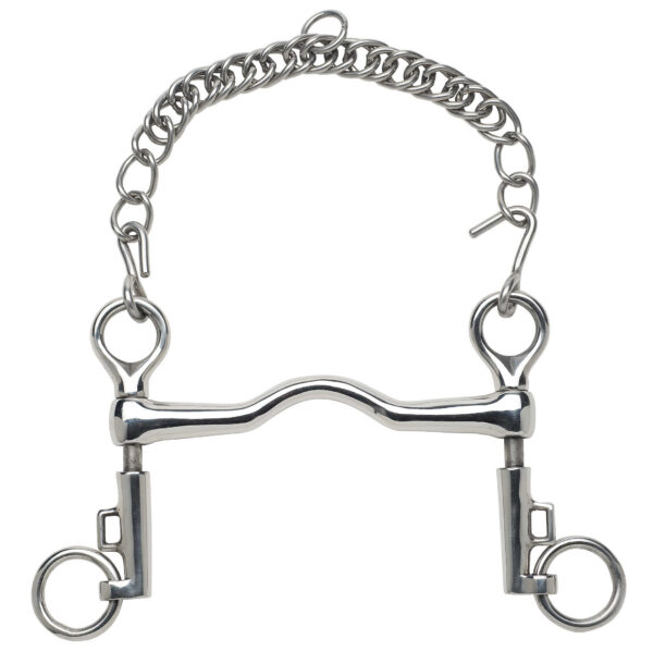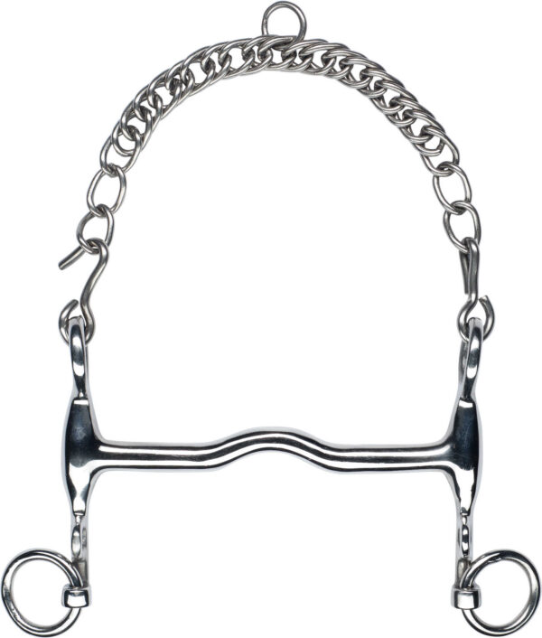 Stainless steel mouthpiece with a lever action and easy tongue passage. The separation between the mouthpiece and the bit allows