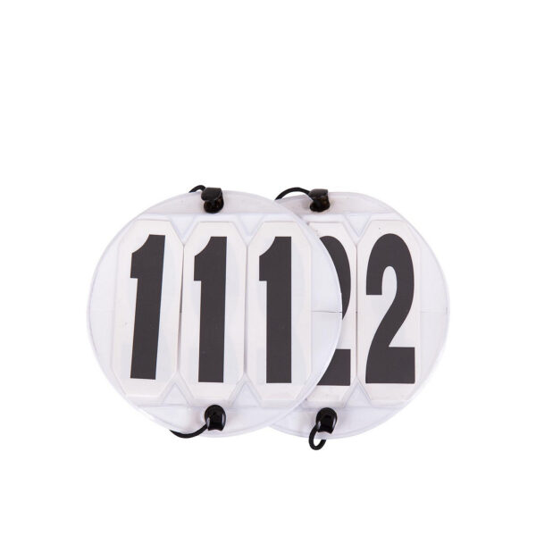 Competition numbers round with a diameter of 9 cm. The numbers can be changed from 000 to 999.