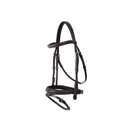 Symmetric bridle with an anatomically formed headpiece with soft padded lining. The browband is round raised and has soft padded