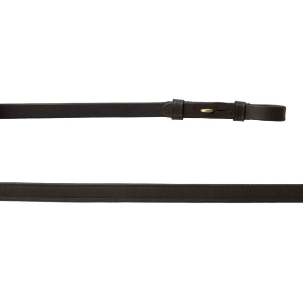 Soft, flat leather reins with stops. Product specifications: 20 mm leather With 14 stops Concealed closures Material: Leather and metal