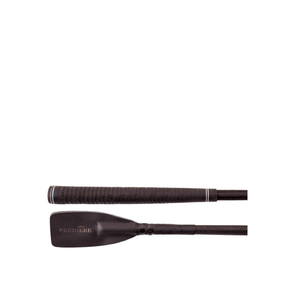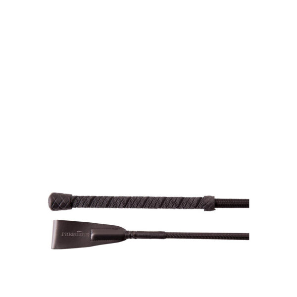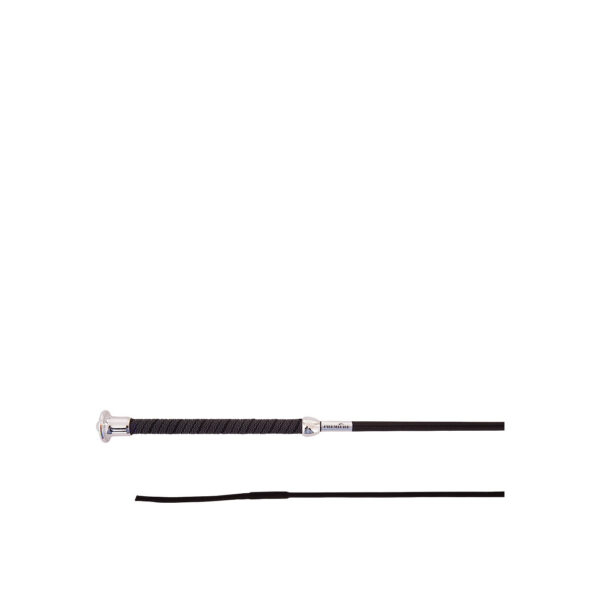 Special eventing (military) whip with a long (circa 30 cm) double-sided EVA lined ‘soft cushion’ keeper with a patent leather