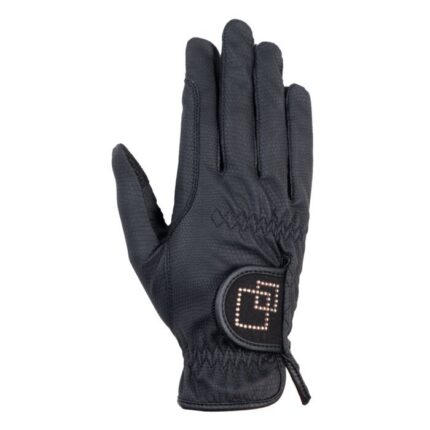 decorated with fine crystals leather imitation/artificial leather elasticated wrist reinforcement of reins machine washable at 30 degrees delicate wash required