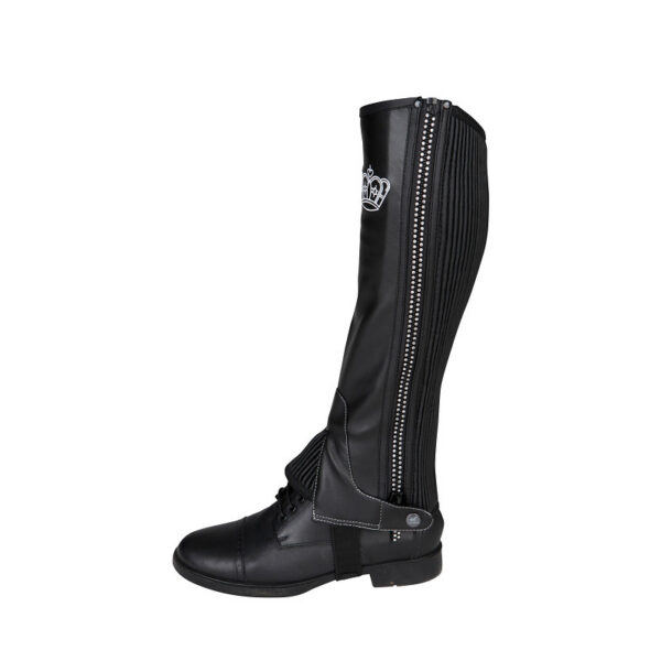 HORKA Bruce säärised – elegantsed ja sädeleva detailiga Stiilsed ja elegantsed säärised ratsutamiseks, valmistatud vastupidavast sünteetilisest nahast. Luku ääres olev