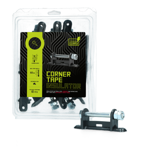 Corner tape insulatorThe ideal corner insulator for tape up to 60 mm. Suitable for corners and branching off tape into