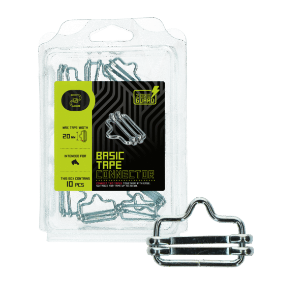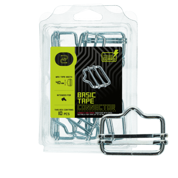 Easily connect 2 tapes. Suitable for horse fencing. Content10 pieces VariantsZONE0254: for tape up to 20 mmZONE0255: for tape up to