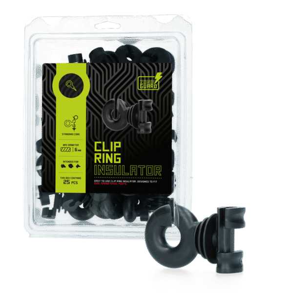 Clip ring insulator Easy-to-use clip ring insulator, designed to fit oval spring steel posts.  6 mm. Suitable for cattle, sheep, dogs.