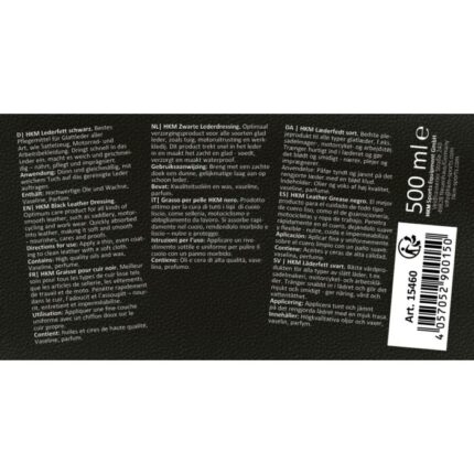 HKM Must nahapalsam, 500 ml Kvaliteetne musta tooniga nahamรครคre, mis on mรตeldud kรตikide siledate nahkpindade hooldamiseks. Toidab, pehmendab ja kaitseb
