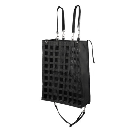 Black hay bag.• Ideal during tournaments or transport• 100% polyamide• With 2 rings to hang the bag• 65 x 50