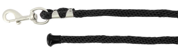 Made of soft polypropylene without a snap hook. – Halter attachment loop on one end and double leather link on