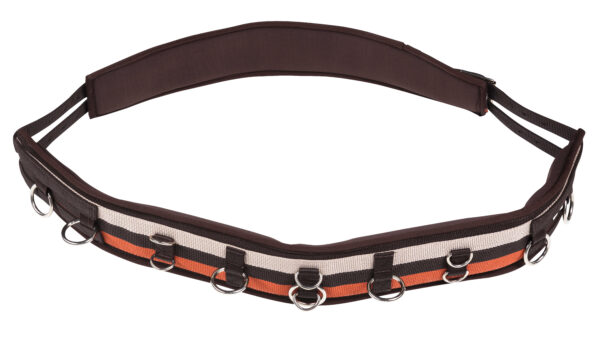 A synthetic lungeing girth ideal for lunging or long reins. – Adjustable: 15 metal rings on the back and belly.