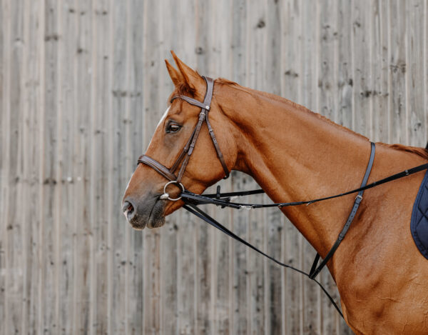 Elegant hunting harness with integrated martingale. – Stylish: Decorative stitching, black for black leather and cream for Havana leather. –