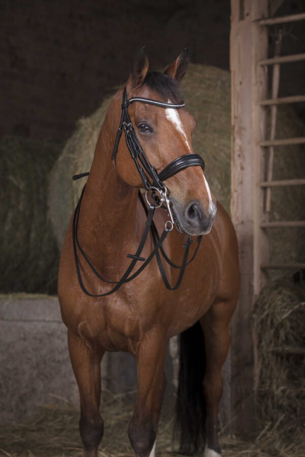 A proven choice – Flexibility: Italian cowhide. – Resistance: Padded hand reins. – 16 mm rubber. – Black stitching.