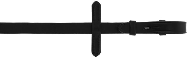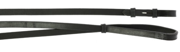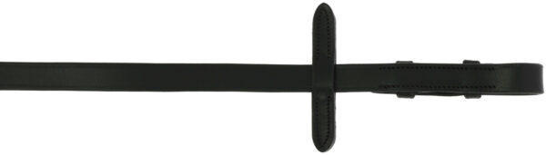 Curb reins made of cowhide with hook closure, 13 mm. Black stitching.