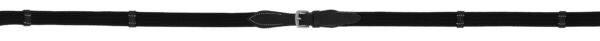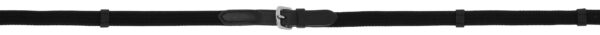 Buffalo leather reins with hooks. – 16 mm rubber reins with a 3.5 mm thick polypropylene strap inside. – Black