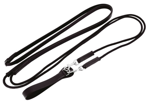 Reins for use with the roller gogue (306403) as a controlled gogue. DETAILS: – Made of buffalo leather. – Stainless