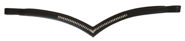 Shaped browband, made of buffalo leather. Black stitching for black leather and white stitching for tan leather.