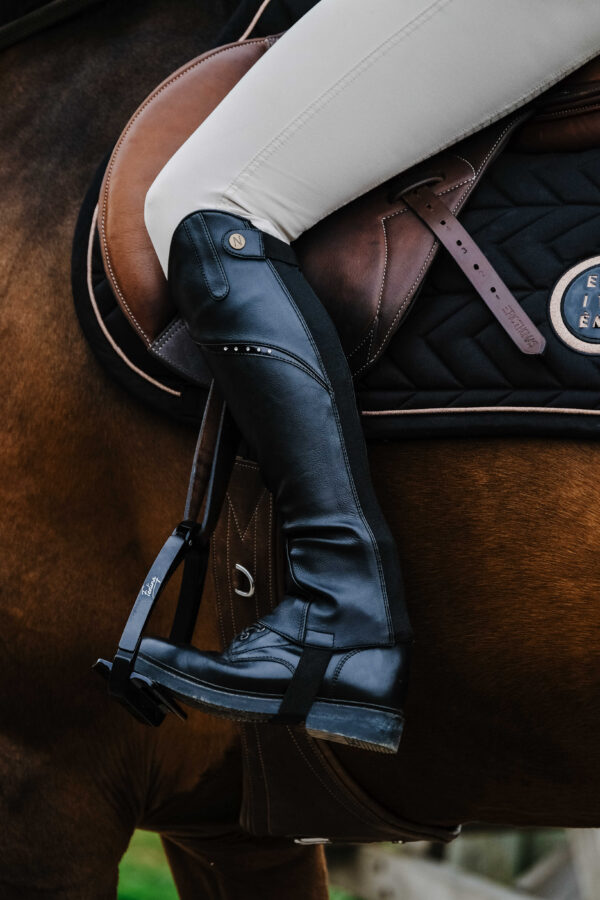 Mini-chaps 80% polyurethane and 20% elastane.- Elastic accordion calf.- YKK zipper.- Secured by snap buttons on flap at the top