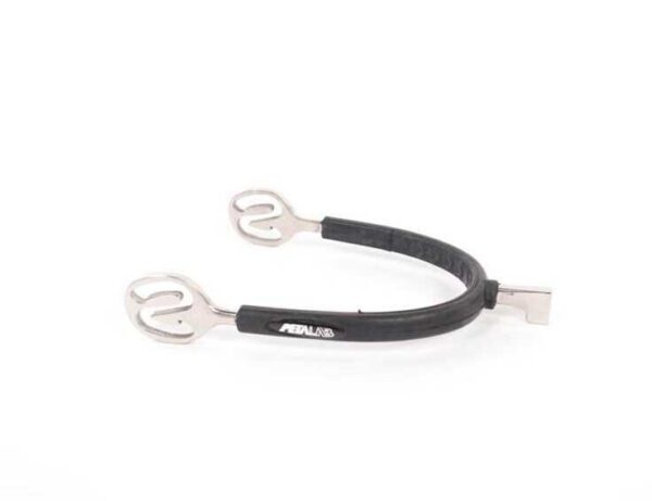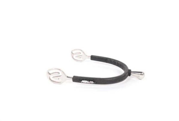 – Round polo-style spur. – Gentle action. – Covered with soft rubber. – S-shaped eyelets that facilitate the correct positioning