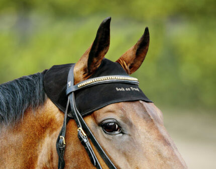 This nose and poll guard made of therapeutic soft gel can be used for both the headpiece and the noseband. This comfortable material offers protection against rubbing and helps to protect the leather of the headpiece or noseband from sweat. The guard also distributes pressure evenly when used over the sensitive poll area between the horseโs ears. Therapeutic soft gel has excellent anti-slip properties, does not support bacterial growth and is non-toxic. The material is also exceptionally maintenance-friendly. The guard is supplied with clear fitting instructions. Dimensions: 28 x 7 cm (l x w).