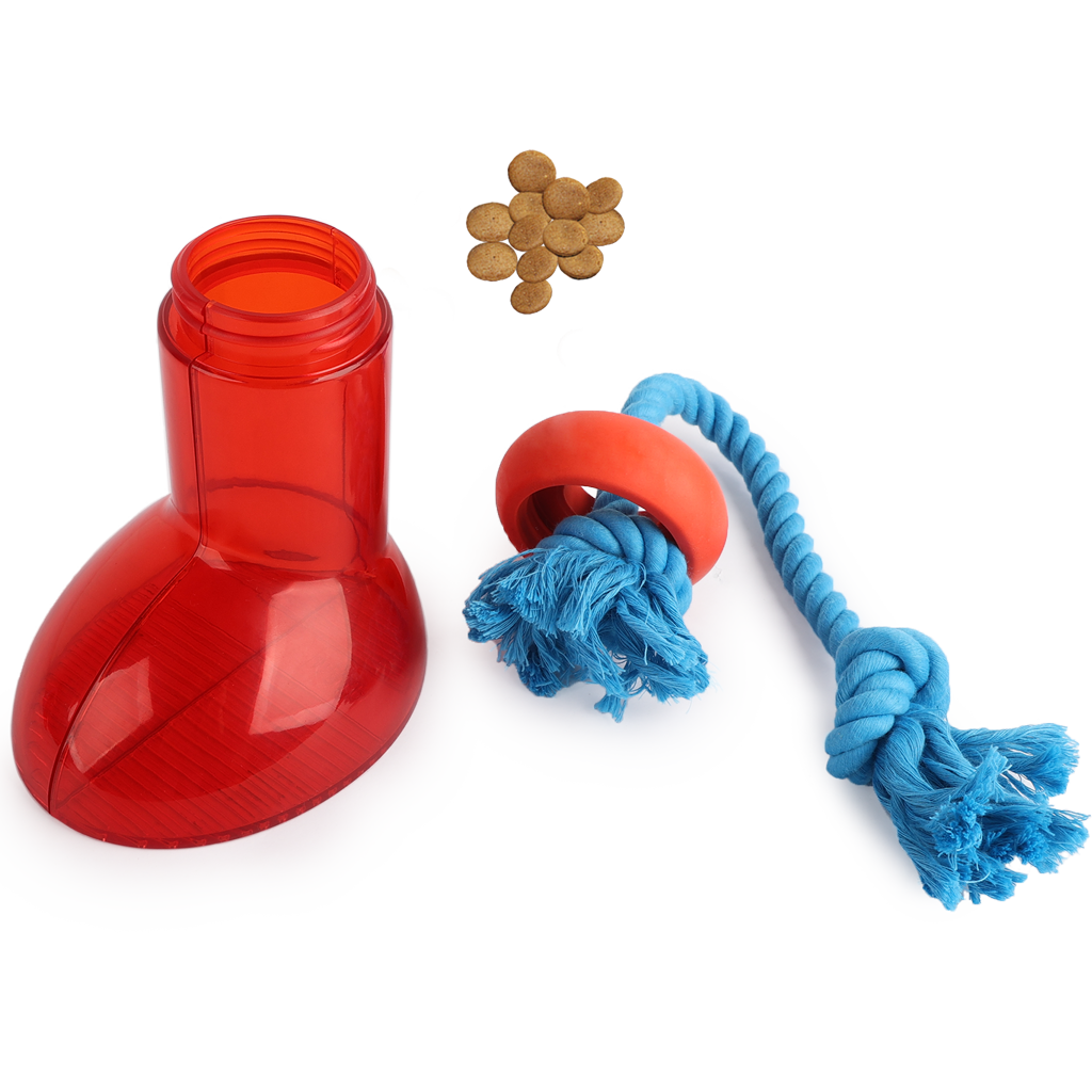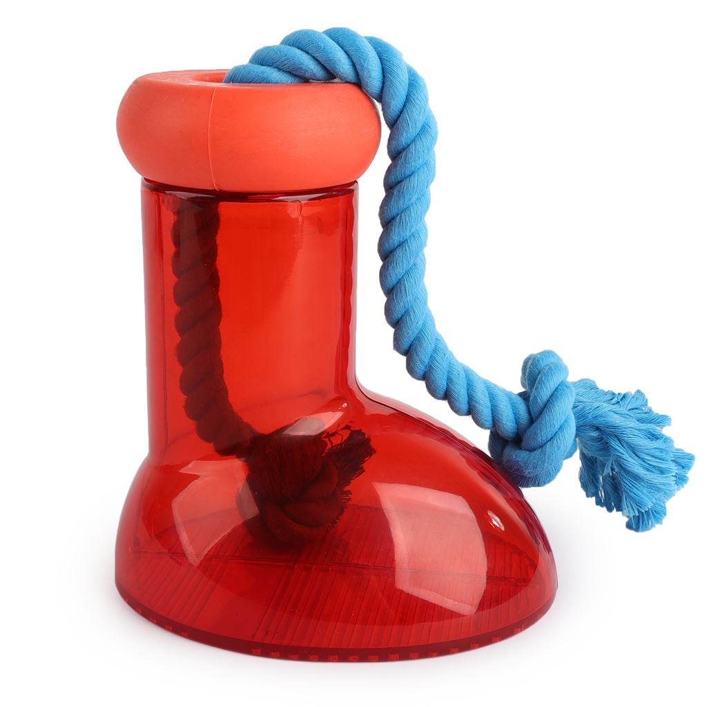 This food or snack dispenser will keep dogs occupied for hours! Twist off the top of the boot, put some kibble or snacks in the boot and twist the top back on. The dog has to try hard to get the treats out of the opening at the top along the rope. Thanks to the rope, the dog can easily grab the boot and move it around. Ideal when the dog is bored, needs to be home alone or as a reward.