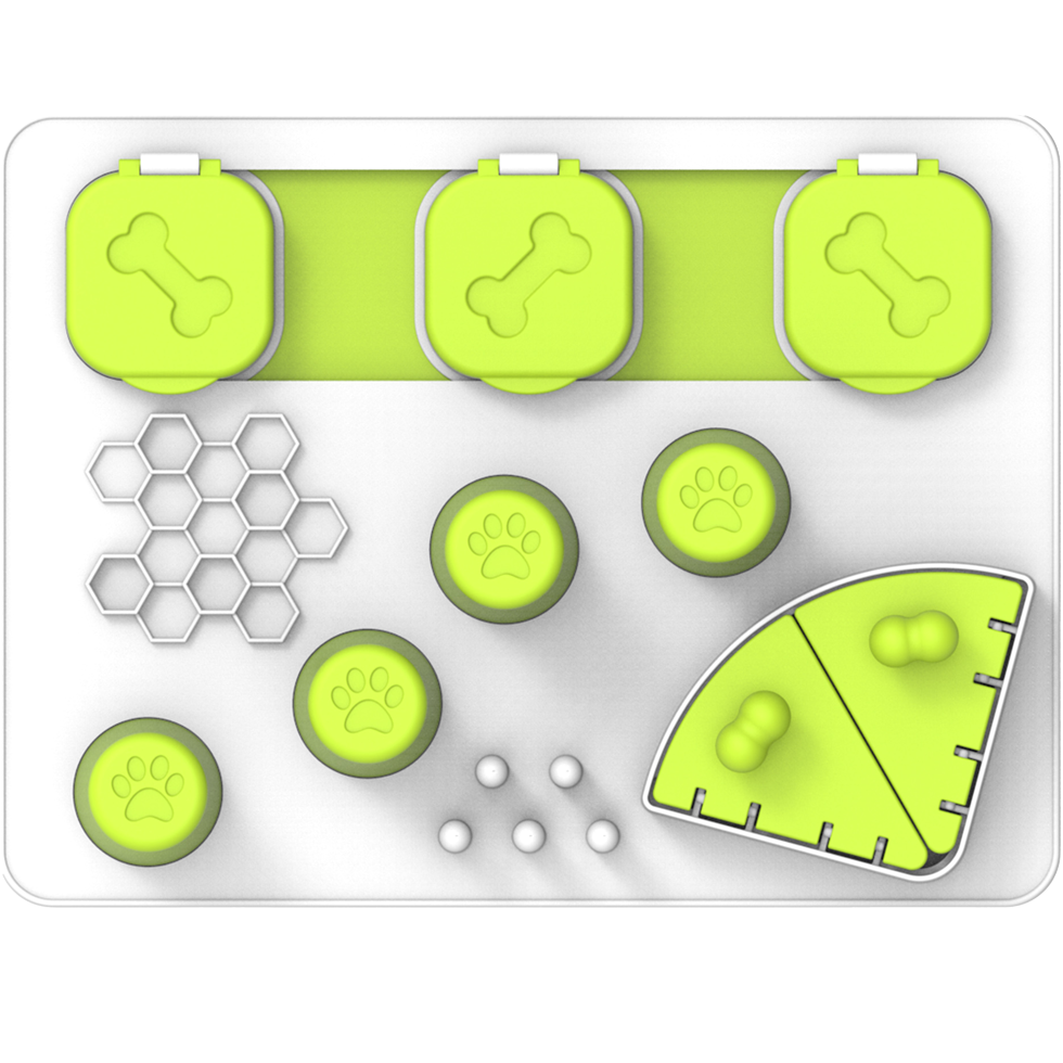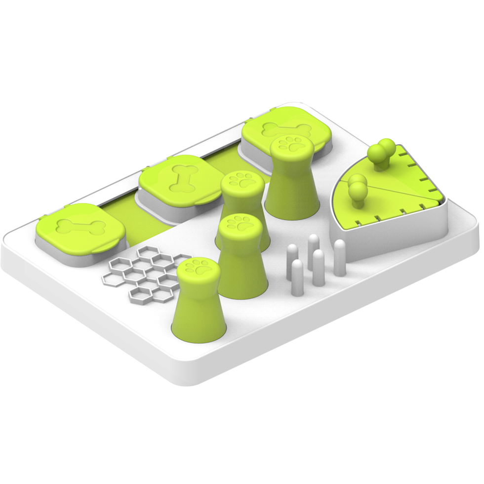 This fun food puzzle will make dogs enjoy their meal even more! Dogs will have to slide, flip and lift the parts of the puzzle to find the hidden treat. It stimulates the dog mentally, it rewards the dog and it can work well as a distraction when the dog has to be home alone, for example.