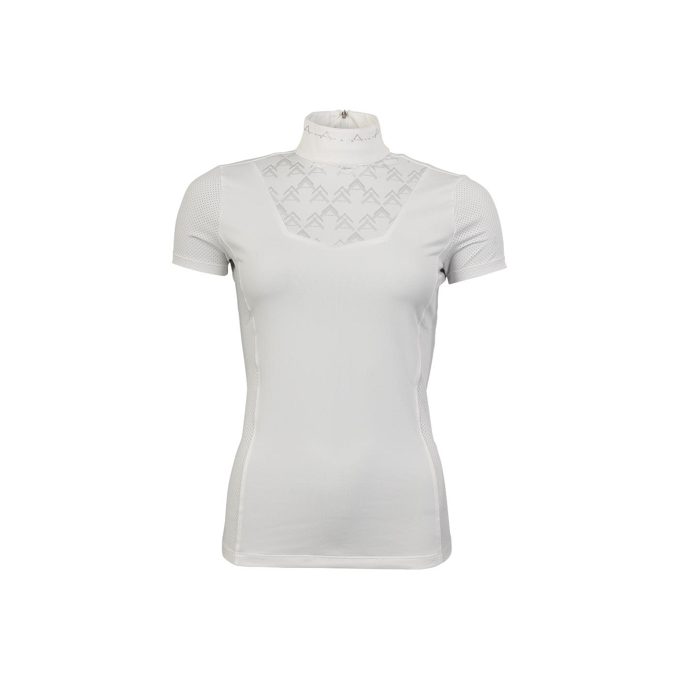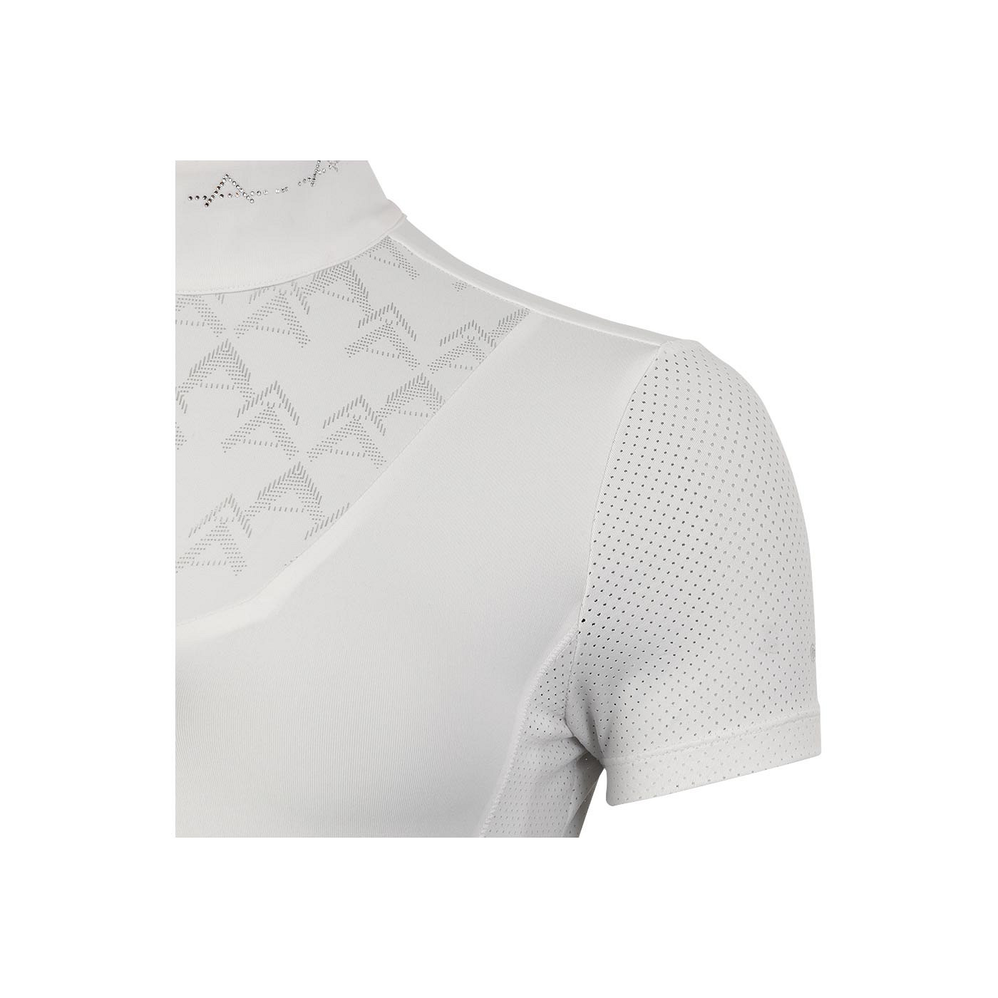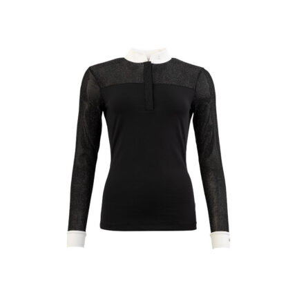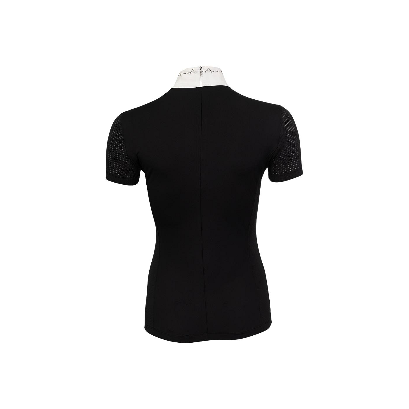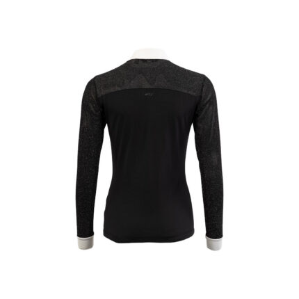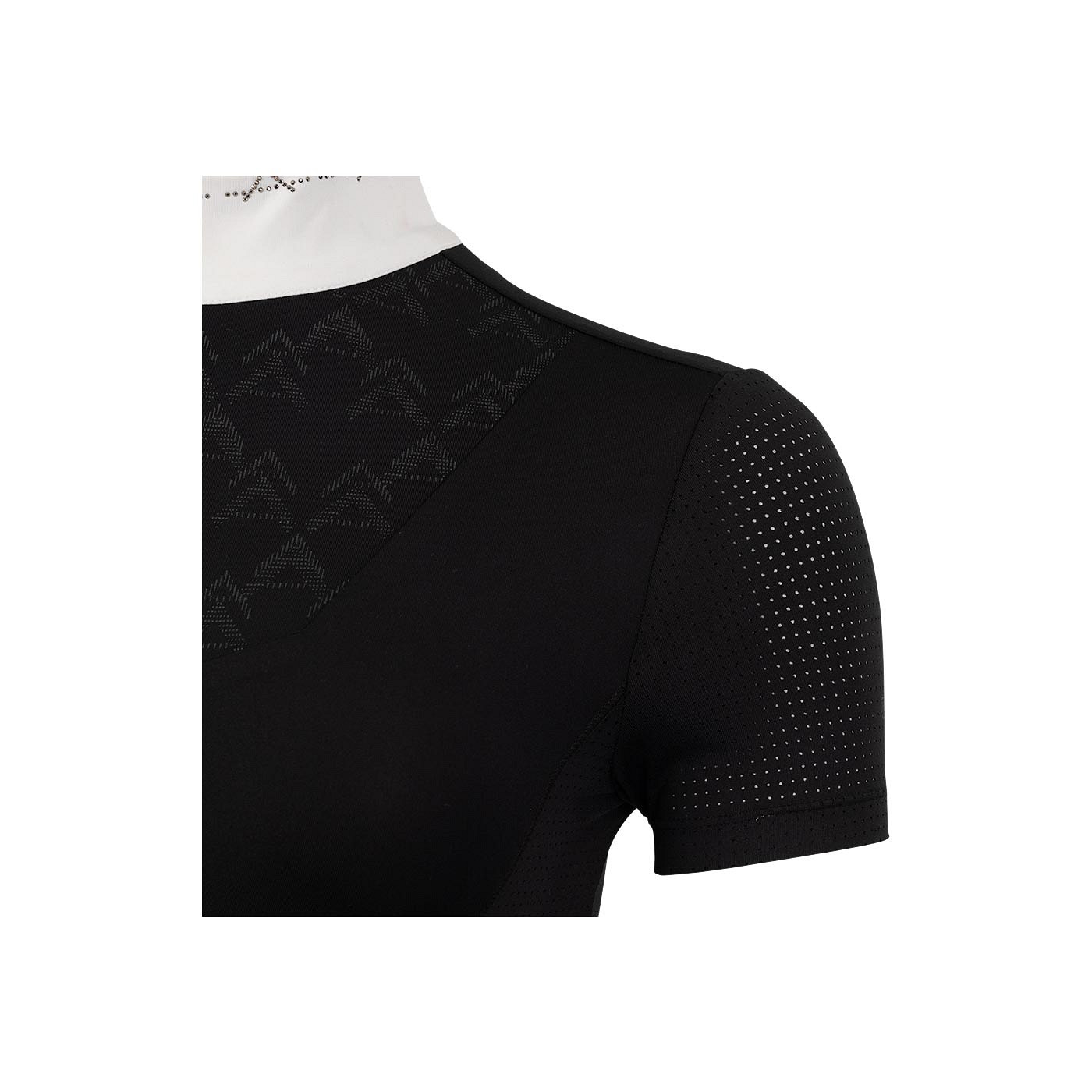 With this classy competition shirt, all eyes are on you. The shirt keeps you fresh thanks to all the technical properties of the fabric. In addition, the shirt is stylishly finished with rhinestones on the collar and a subtle print on the chest.