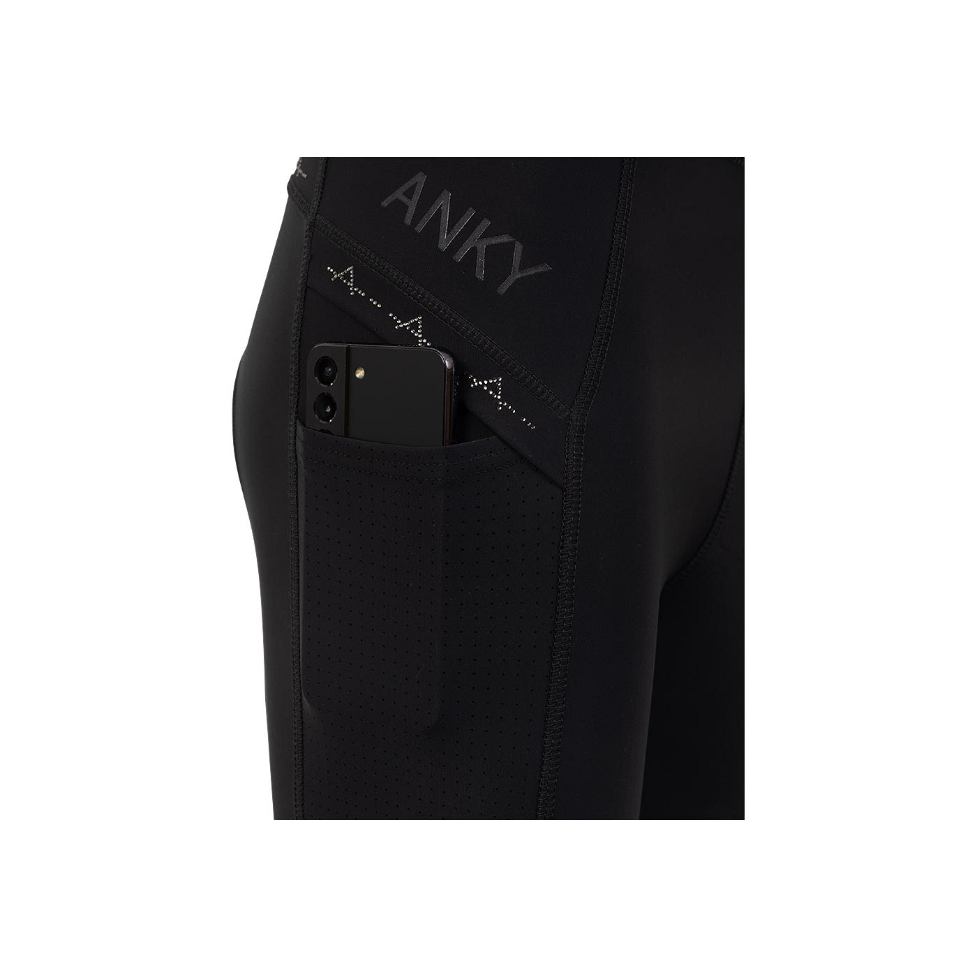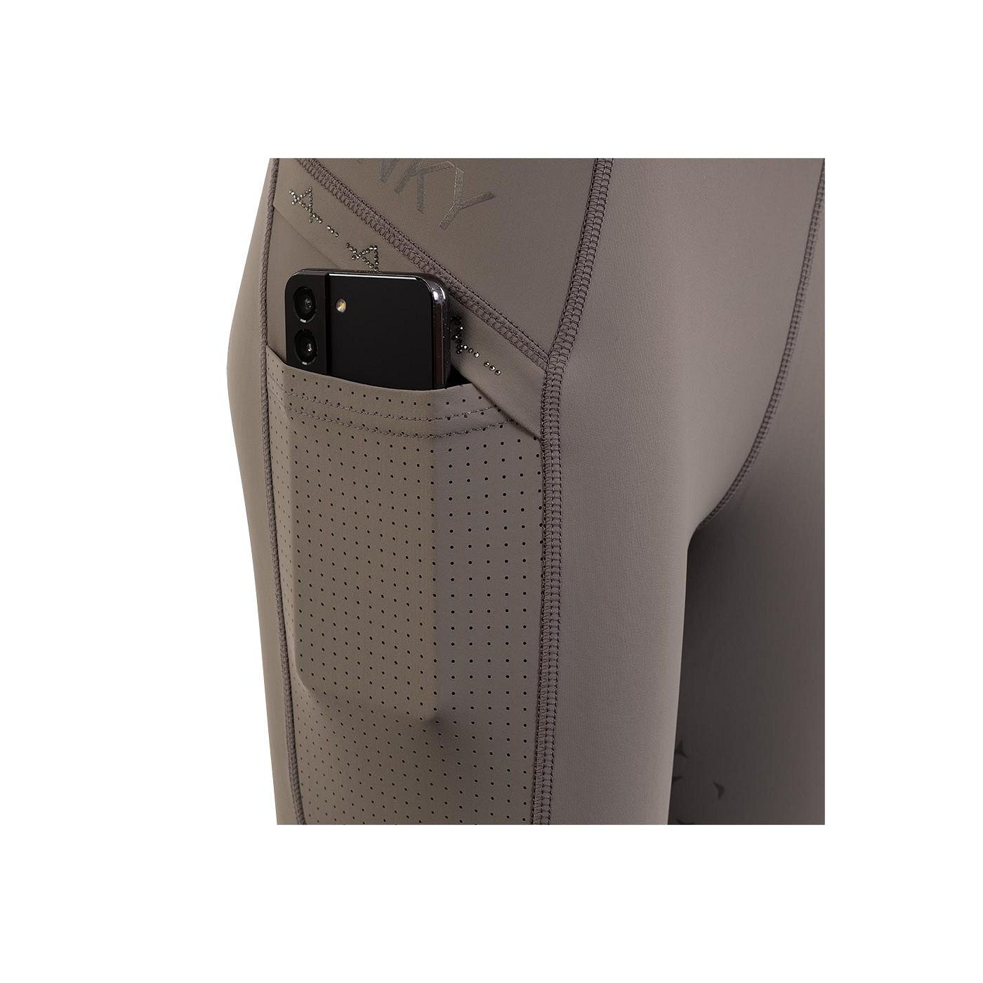 The treggings have two deep side pockets that are breathable thanks to the laser-cut holes. The pockets and back feature the subtle, elegant rhinestone pattern that can also be found on the Exposure shirt. The silicone seat maximises the stability on the saddle.