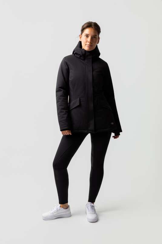 B Vertigo Dana on luksusliku vรคlimusega talvejope, mis รผhendab mugavuse ja praktilised detailid. Jope kangas on veniv, hingav, soe ja veekindel โ ideaalne talviseks ratsutamiseks ja igapรคevaseks kandmiseks. Reguleeritav sisemine kummipael rรตhutab naiselikku siluetti.