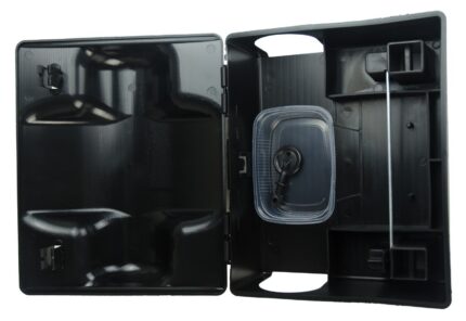 Robust bait station in a tunnel form. This makes it easy to place the bait station behind pallets and other racks. Contains a lock and key. Suitable for all kinds of bait. The bait holder makes it easy to place a block or paste. The bottom contains drainage holes and makes it possible to mount it to the ground. Comes with key.