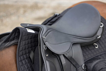The BATES Kimberley is more than ever the most comfortable stock saddle in the world. Saddles with fenders offer the same benefits as the standard Kimberley saddle, but are suitable for riders who prefer the position and contact associated with fenders. Thanks to its adjustable fenders, which improve rider-horse contact, it is ideal for breaking in young horses, trail riding, and herding. Made from premium cowhide, it features a flexible synthetic saddle tree with a lifetime guarantee. It features the EASY CHANGE® gullet system and CAIR® air cushion system.