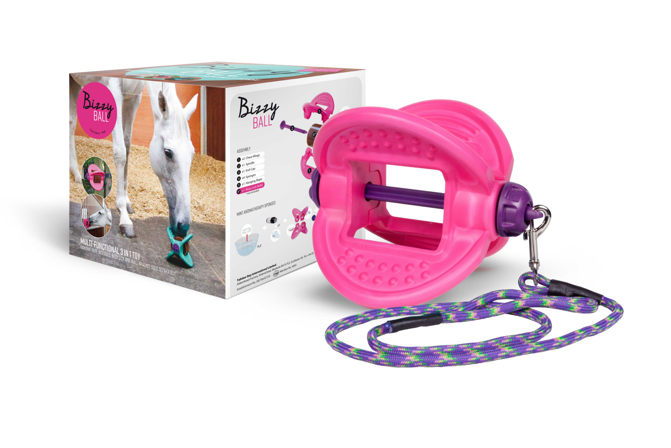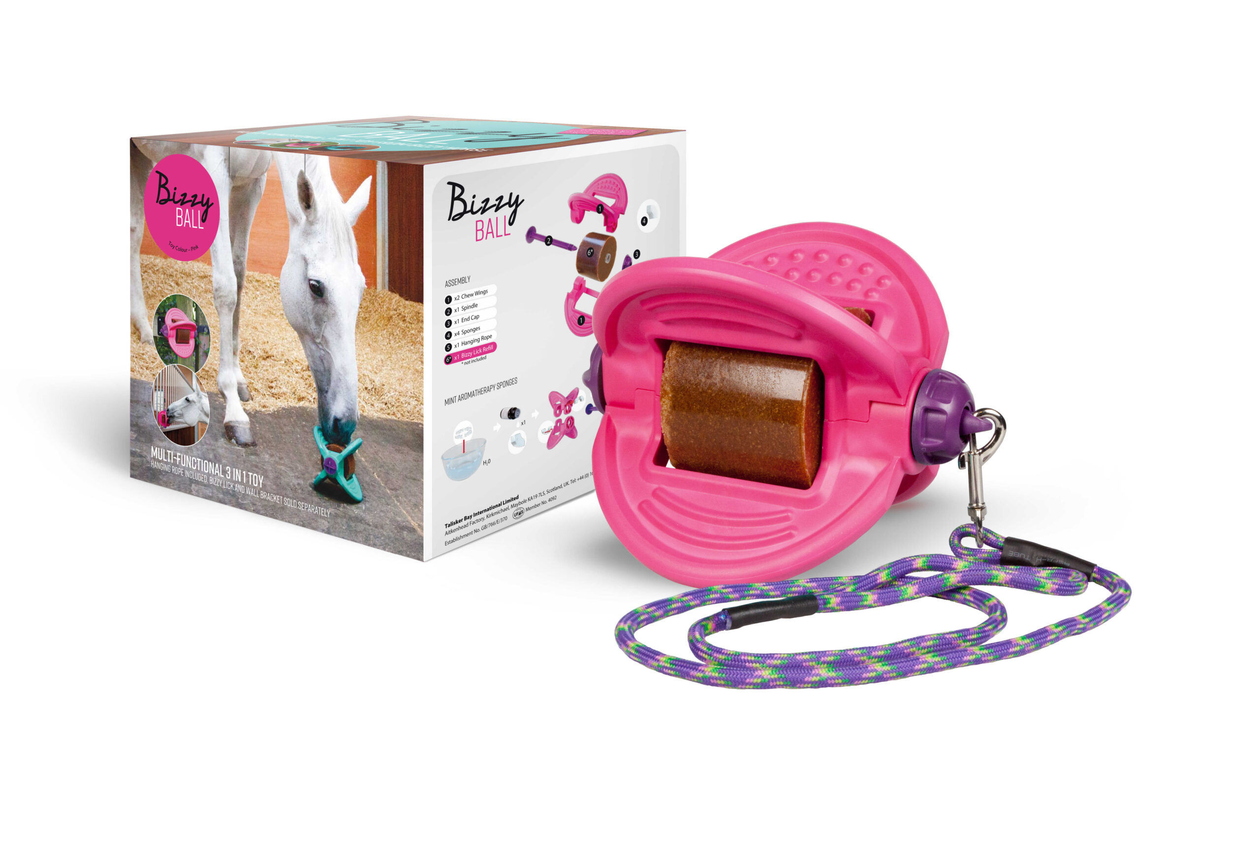 – Practical: Can be used in the stable, in the paddock, or even hanging. The Bizzy Ball increases the longevity of the lick.