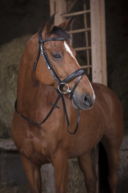 Plain leather, closed curb reins with hook stud billets, 13 mm.