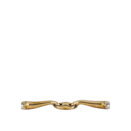 This high-quality double jointed eggbutt snaffle is made of solid Cuprigan with stainless steel rings. Cuprigan is an alloy consisting of 89% copper, 7% aluminium, 3% iron and 1% zinc. The oxidation process of the material gives a pleasant smell and taste. The anatomical design of the bit follows the shape of the horseโs mouth, which allows for a gentle and even pressure distribution. The design, combined with the unique properties of Cuprigan, encourages the chewing process and saliva production, which allows for a pleasant connection with the sensitive horseโs mouth. The bit applies mild pressure on the mouth. Mouthpiece thickness 12 mm, ring size 55 mm.??