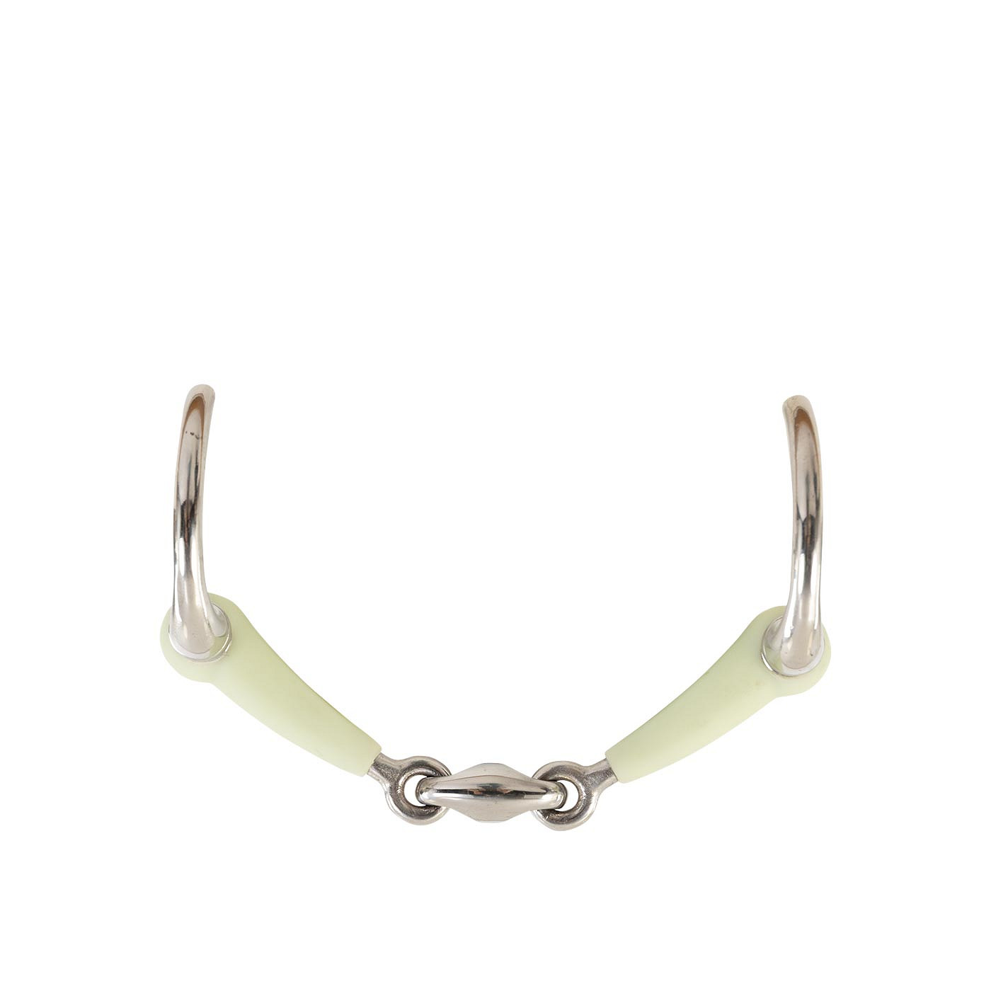 This double jointed eggbutt snaffle has a synthetic mouthpiece with a metal core and stainless steel rings. Thanks to the combination of flexible plastic and high-quality stainless steel, the bits are stable, yet particularly soft and friendly. The plastic has a hardness of 90a and is FDA approved. This means that the material is free of solvents, contains no plasticisers and is also non-toxic. The anatomical design follows the shape of the horse’s mouth, creating a gentle and even pressure distribution. The eggbutt snaffle has fixed cheek pieces, aids will therefore have a more direct effect. This type of bit is often easily accepted as it offers stability.