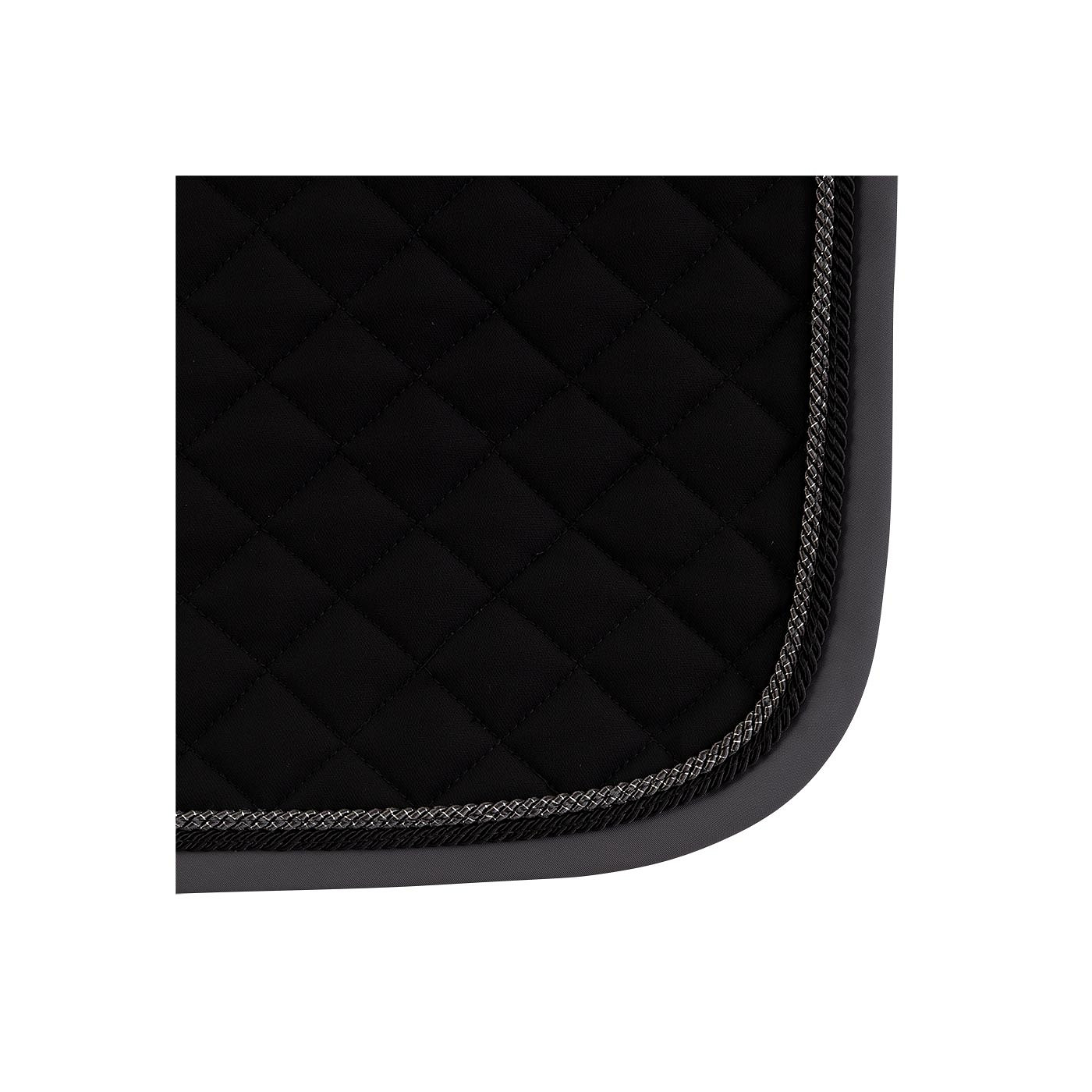 The design has also been subtly refined. The smaller diagonal quilting gives the saddle pad a modern, well-finished appearance and helps maintain its shape over time. The double cord piping, with a discreet glitter accent, adds a touch of elegance without overpowering the overall look. An adjustable girth loop ensures the pad stays neatly in place, ride after ride.