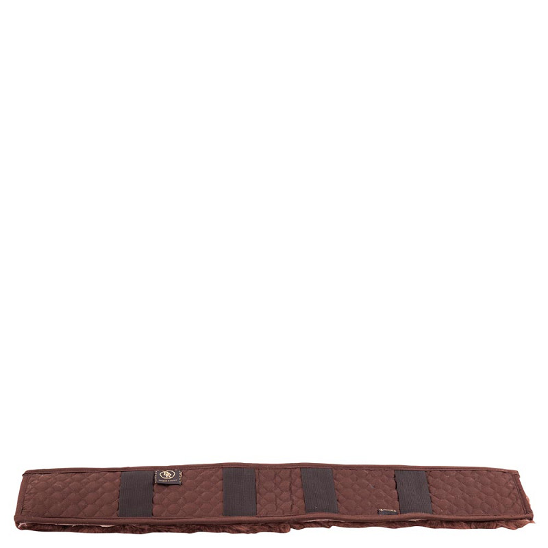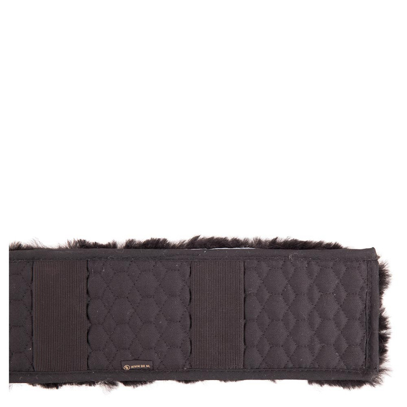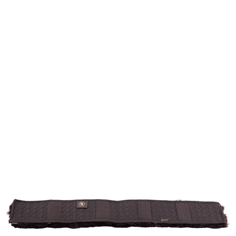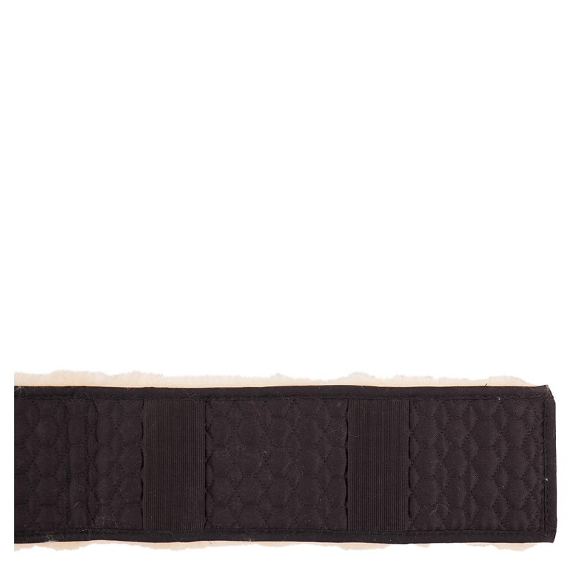 One side is made of medicinal sheepskin to protect the skin of the horse. The other side has elastic bands for attachment to the girth.