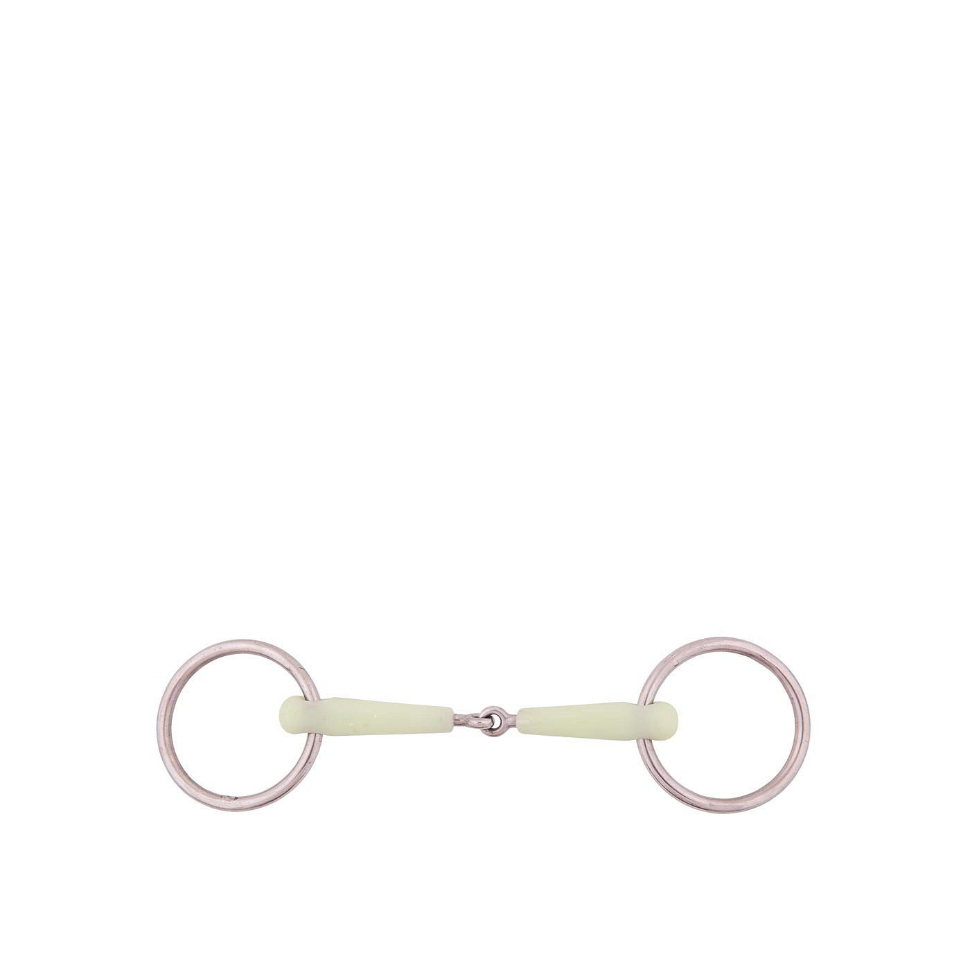 Single jointed, pony loose ring snaffle bit with Apple Mouth mouthpiece and stainless steel rings, rings 55 mm. Mouthpiece thickness 15 mm.