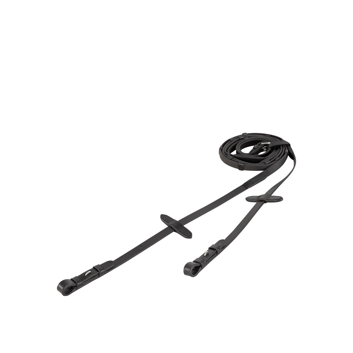 This durable rein is made of very sturdy webbing from Biothane and reinforced with nylon. It is a sustainable alternative to leather. The rein is equipped with anti-slip material and contains seven stops.
