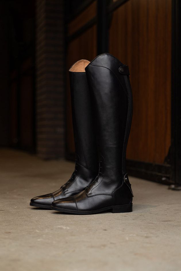 โข Beautiful riding boots for jumping made of supple leather with an elastic lace