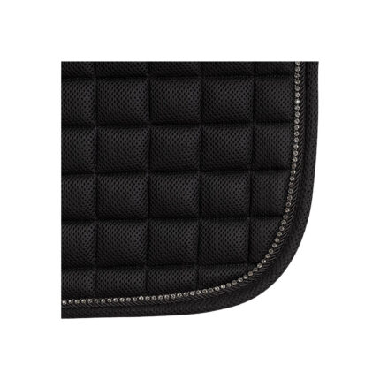 Anatomically shaped, extremely breathable, moisture-regulating and quick-drying: these are the characteristics of the Ace Flow saddle pad that offer optimal comfort to your horse. In addition, the saddle pad is partly edged with a matching cord piping and a shiny chain of stones.