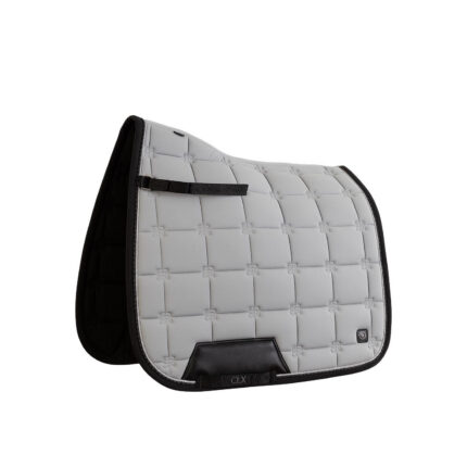 This beautiful saddle pad is elegantly finished with a luxurious, dark grey glitter piping and has a square quilting. Perfect to make an overwhelming impression at a competition. The breathable lining of Cool Plus carries moisture away for a quick-drying effect to ensure that the horse remains as comfortable as possible under the saddle pad. The saddle pad has retaining straps and girth loops with Velcro.