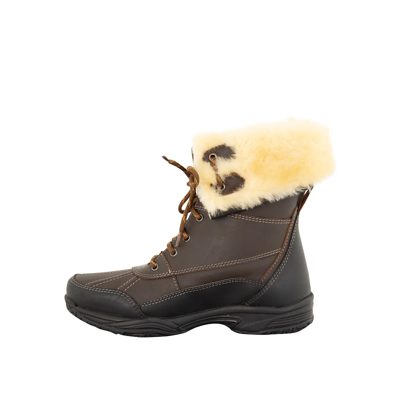 These stylish stable shoes for ladies feature a warm lining made of real sheepskin and an insole of artificial sheepskin. They can be worn as ankle boots, but also as long boots.